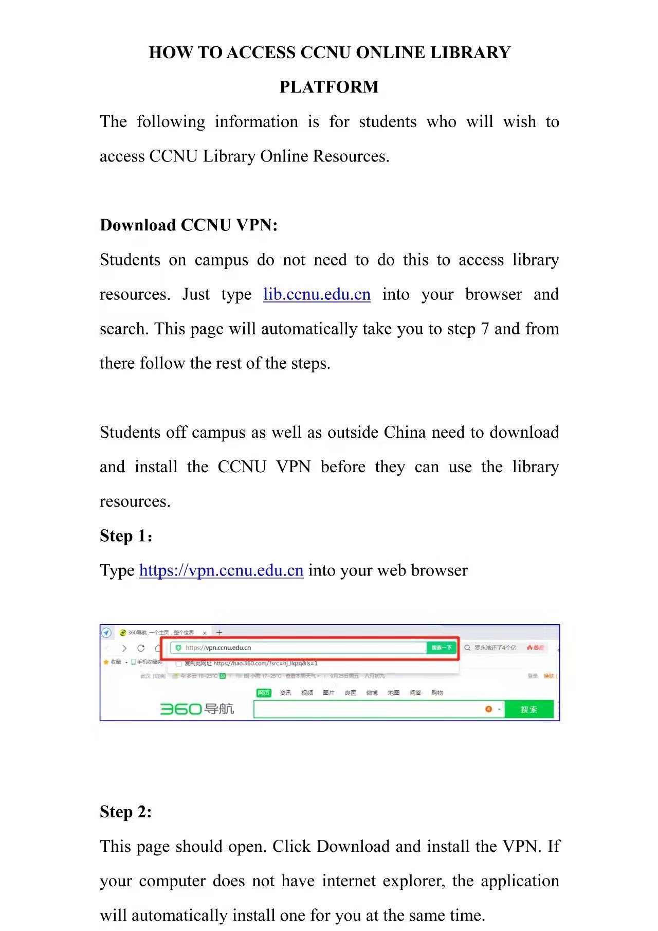 校外图书馆资源VPN访问指南 | HOW TO ACCESS CCNU ONLINE LIBRARY PLATFORM